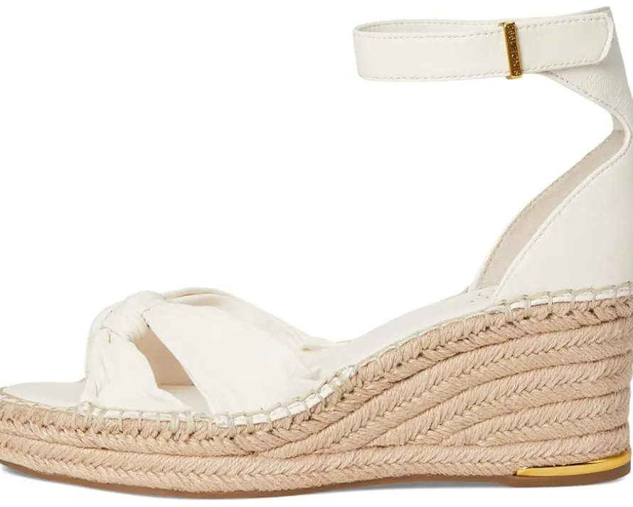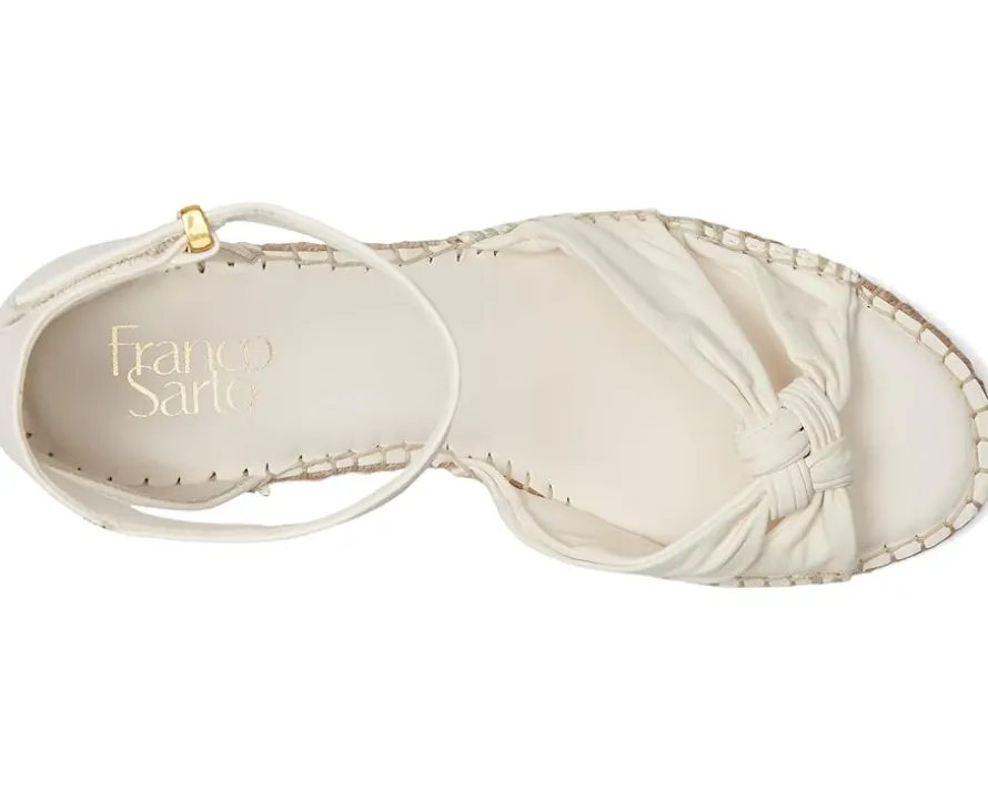 - Elevate your look with the timeless silhouette and trendy aesthetic of the Franco Sarto® Clementine Heels. The open toe heels are crafted with a leather upper with a delightful knotted strap detail at the front and an ankle strap with adjustable hook-and-loop closure. These come with a polyurethane lining, leather insole, synthetic rubber outsole, and a jute-wrapped wedge heel.