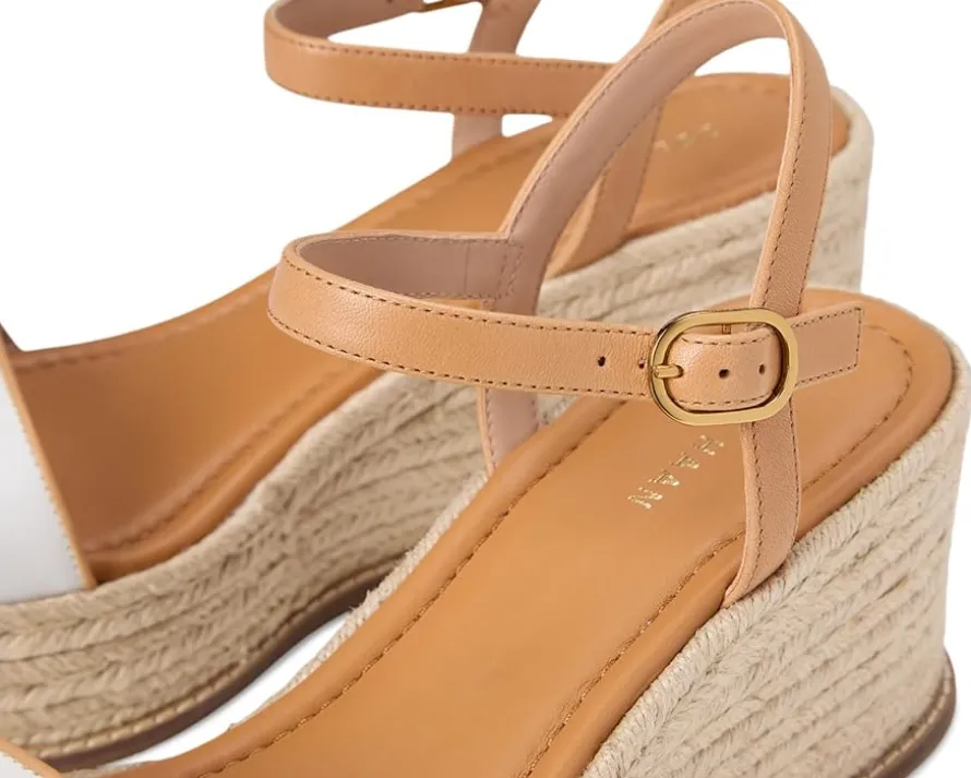 - The Cole Haan® Cloudfeel Keeton Espadrille Flatforms are one-band Flatform espadrille sandals that are perfect to pair with your different outfits and styles. The leather upper features an ankle strap with a functional buckle closure and an extended welt with a welt stitch. These heeled sandals are crafted with a single-density cushioned footbed, EVA insole, and polyester lining.