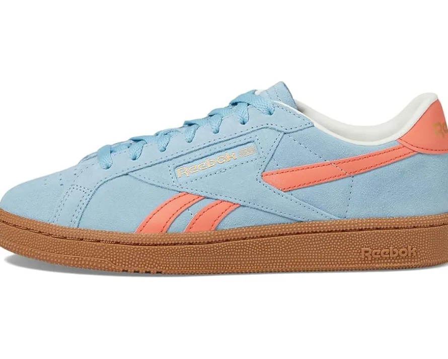 - Step up your fashion game with these timeless Reebok® Lifestyle Club C Grounds UK Sneakers that never go out of style. The low-top sneakers feature a full suede upper with full gum cupsole, synthetic leather lining, silver metallic side stripe detail that adds style to the look, and a textile insole for enhanced comfort throughout the day. The lace-up closure on the sneakers is designed to provide a customizable fit.