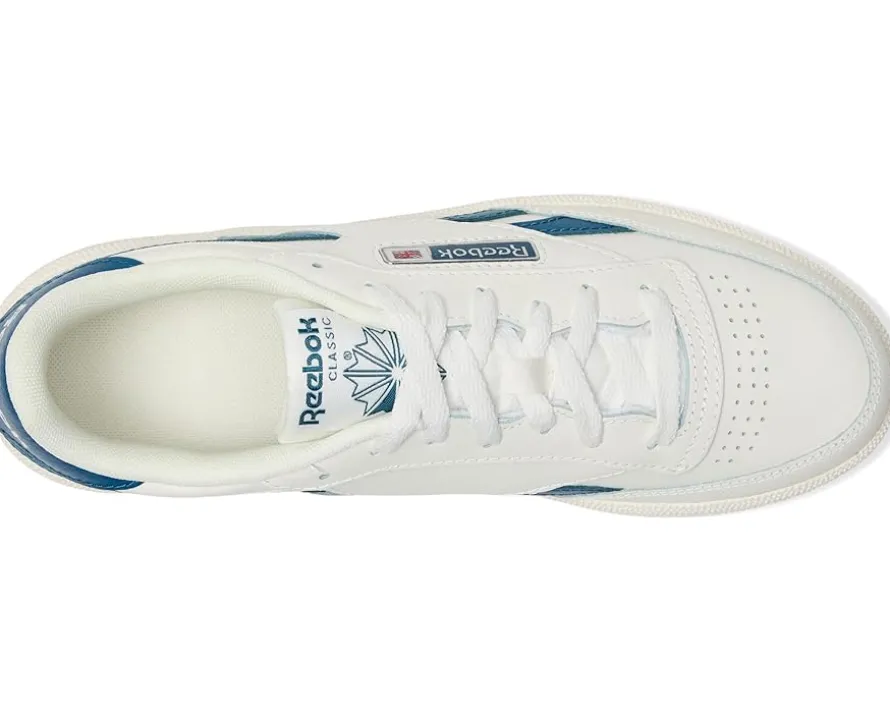 - Slight off-colored collar binding for added “sun baked” aesthetic, the Reebok® Lifestyle Club C Revenge looks classy. Crafted from leather upper, lining, and rubber insole, this pair of shoes features round toe, lace-up closure, iced cup sole bottom, and brand detailing on the sides, tingue and footbed.