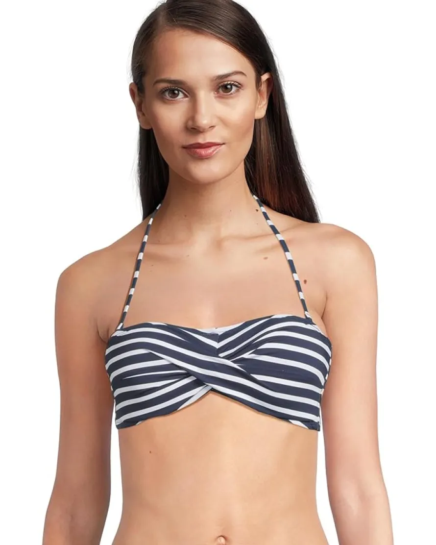- Dive into the waves wearing the stylish Tommy Bahama® Coastline Stripe Twist Bandeau Top. This top features a sculptural twist-front bandini that’s perfect for beach babes trying to kiss those tan lines goodbye, sleeveless style, molded bandeau cups, removable strap, and UPF 50 UV protection.