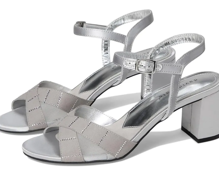 - Feast your eyes on the David Tate® Cocktail – a mesmerizing satin sandal tailor-made for special occasions. Boasting an elegant hook-and-loop ankle strap and a block heel, this enchanting footwear also comes with a suede cushioned pad under the foot for enhanced comfort and stability. It’s the perfect choice for those desiring a sleek, nylon-free look.