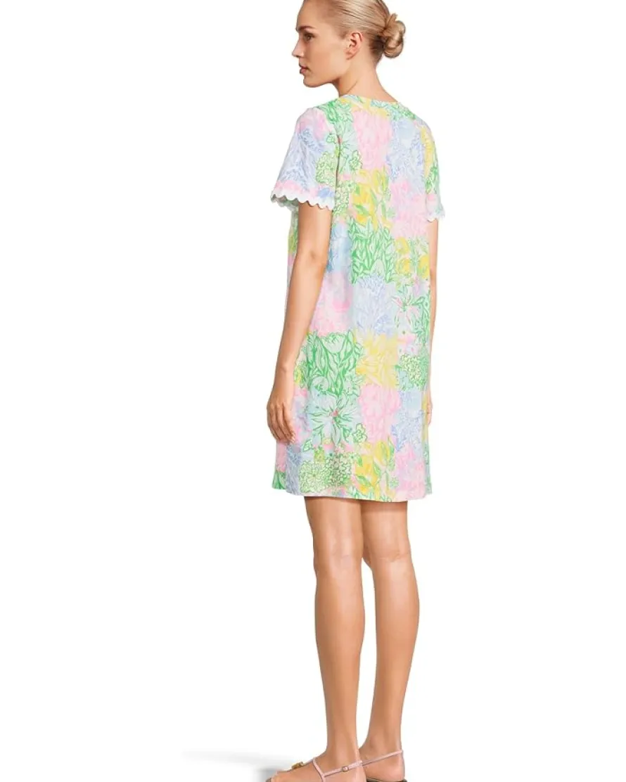 - Stay comfortable while looking effortlessly chic in the Lilly Pulitzer® Cody Short Sleeve Dress. It features a crew neckline and is designed with a swing fit that allows for easy movement and a relaxed silhouette. The Ric Rac trim at the sleeves adds a touch of whimsical charm, making this dress a standout piece in your wardrobe.