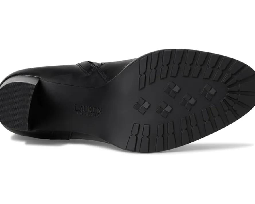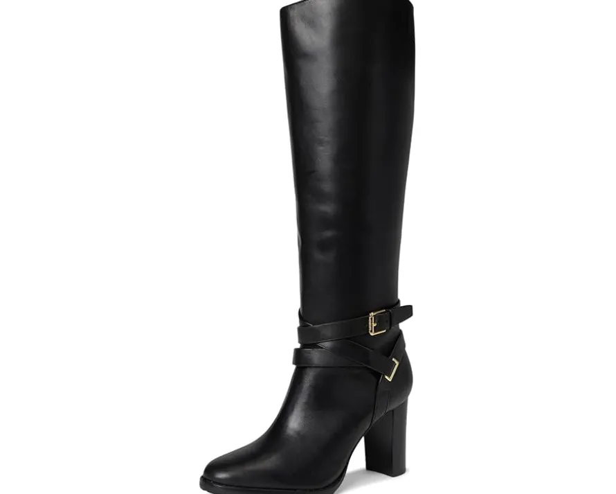 - Crafted from sumptuous burnished leather, the LAUREN Ralph Lauren® Collins Burnished Leather Tall Boots Heel are elevated by equestrian-inspired styling details, including a wraparound crisscross ankle strap. A stacked leather heel affords added sophistication while doubling as a practical design element, which ensures comfortable all-day wear.
