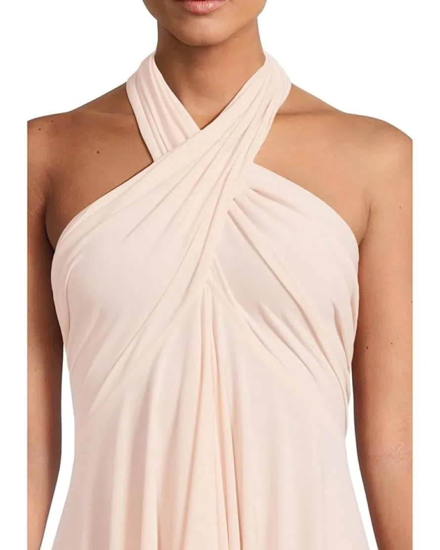 - Solid convertible dress can be worn as a V-neck, halter, one shoulder, or strapless.