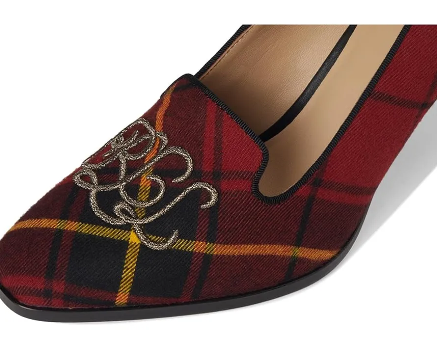 - Embroidered with Lauren’s signature script logo at the vamp, the Lauren Ralph Lauren® Corah Pumps are rendered in velvet for a soft hand and beautiful sheen. These heeled pumps are made of a padded foam insole and leather lining. The leather upper of these pumps is styled with an allover pattern.