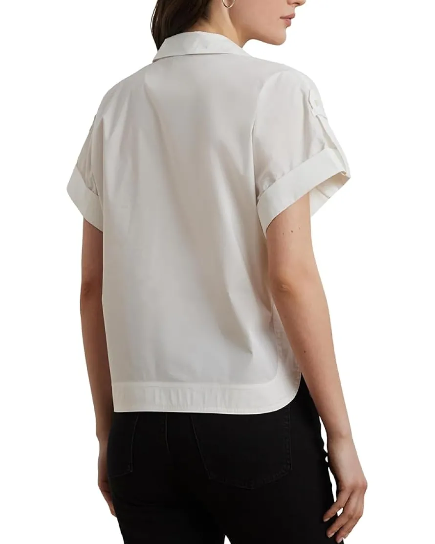 - Look bold and baggy wearing the Lauren Ralph Lauren® Cotton Blend Short Sleeve Camp Shirt. Designed with a roomy, collared neckline, relaxed silhouette and short roll-tab sleeves, this camp shirt is an effortless addition to your wardrobe. Detailed with patch pockets at the chest, it’s crafted with a lightweight stretch-cotton blend for a silky hand feel.