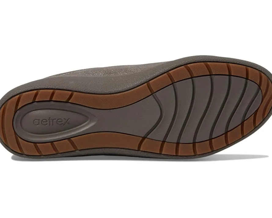 - Featuring perforations along the lateral side, the Aetrex® Courtney low-top sneaker has breathable leather upper construction to keep your feet comfy throughout. The Aetrex® Orthotic System provides arch support that helps stabilize and align the feet, and assists in relieving common foot pain.