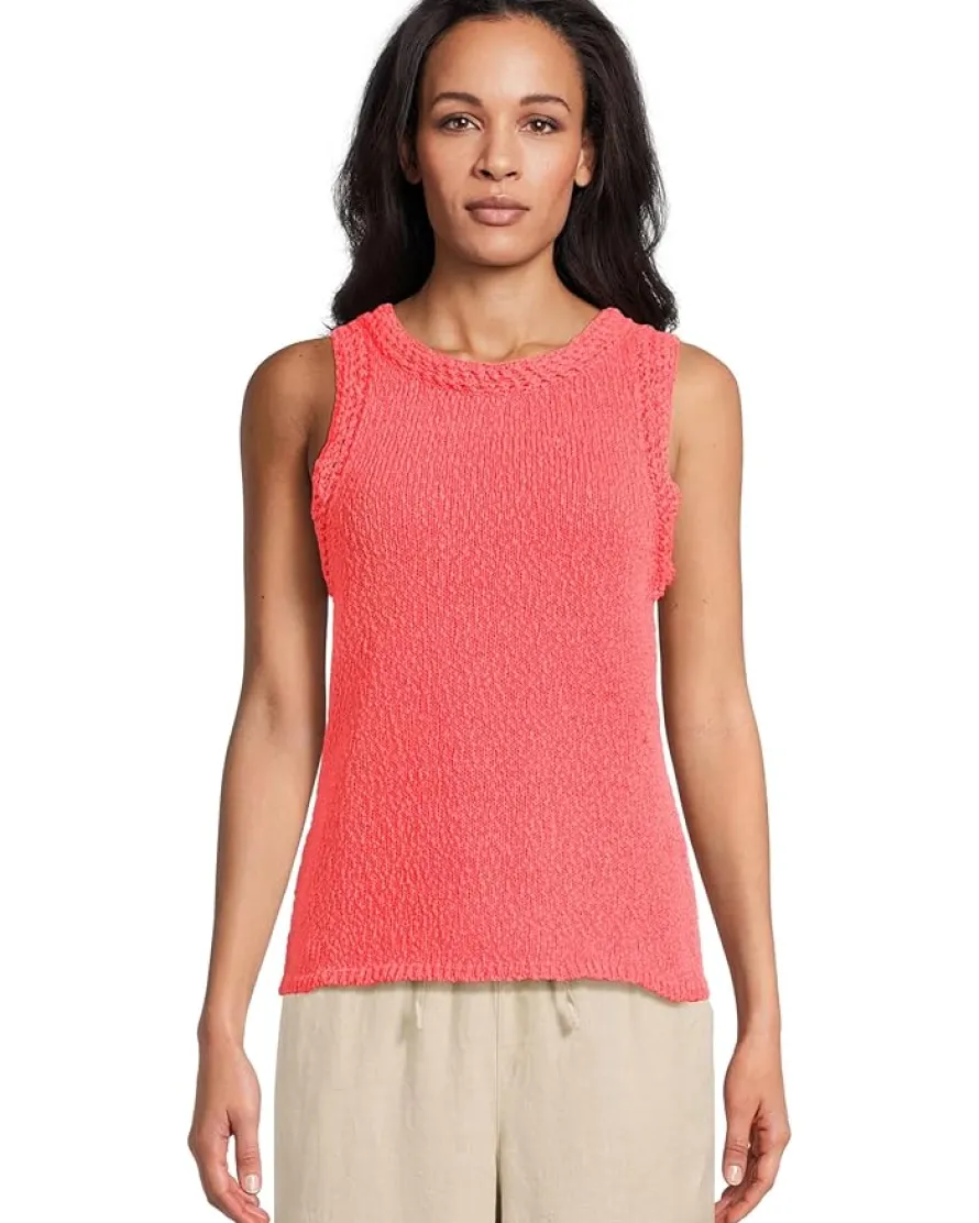 - The Tommy Bahama® Crochet Edge Tank is a sleeveless tank crafted from cool hand cotton/linen slub yarn. It features delicate crochet edging on neckline, sleeve openings, rounded neckline, and a standard-length silhouette with a straight hem.