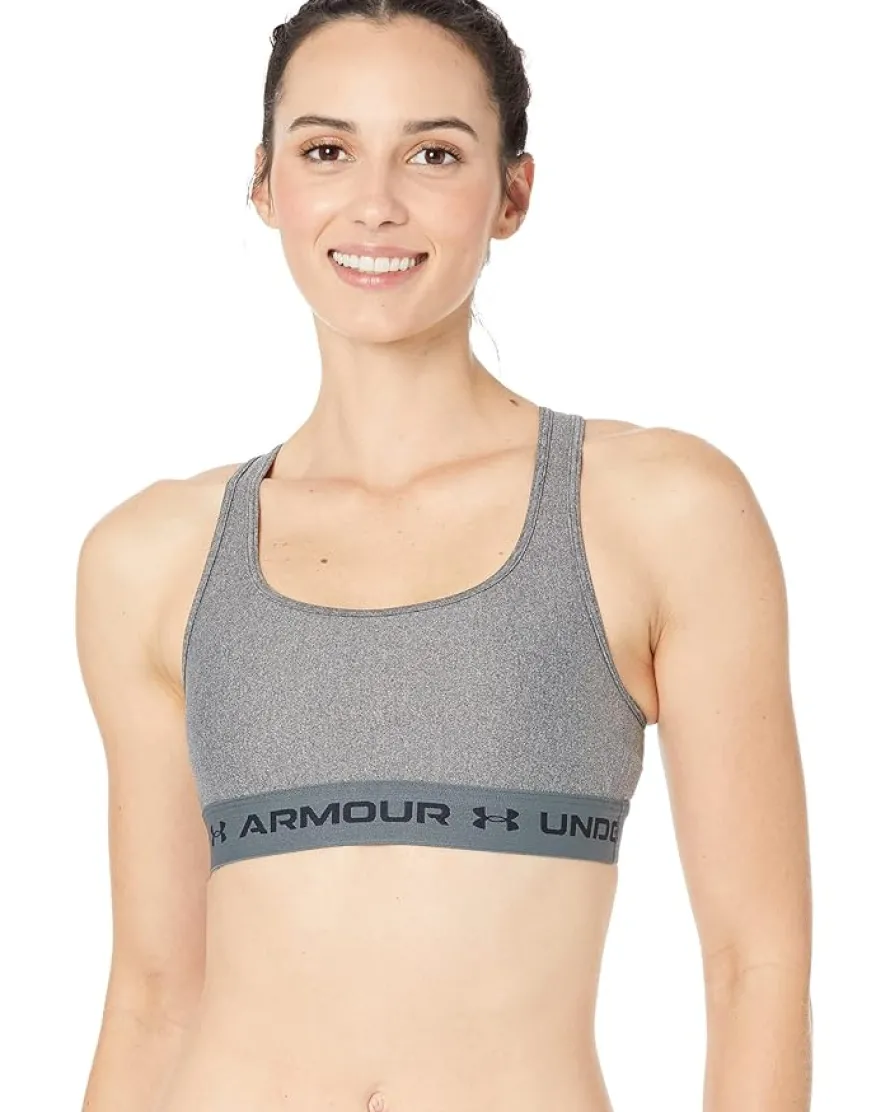- Get your head in the game with the Under Armour® Cross-Back Mid Heather Bra.