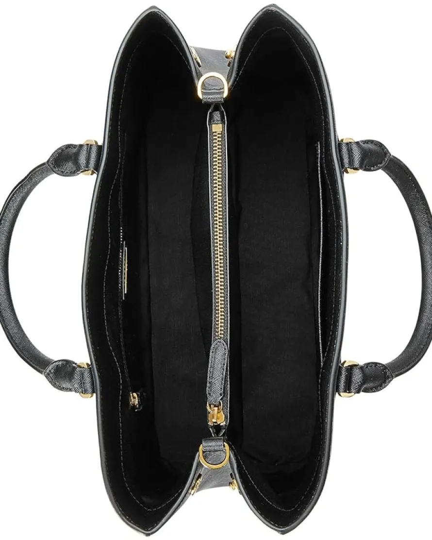 - Two top handles with a removable and adjustable crossbody strap.