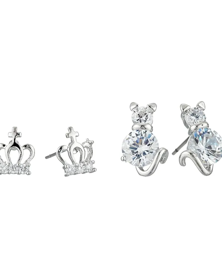 - Gold tone crown studs with small crystal accents .