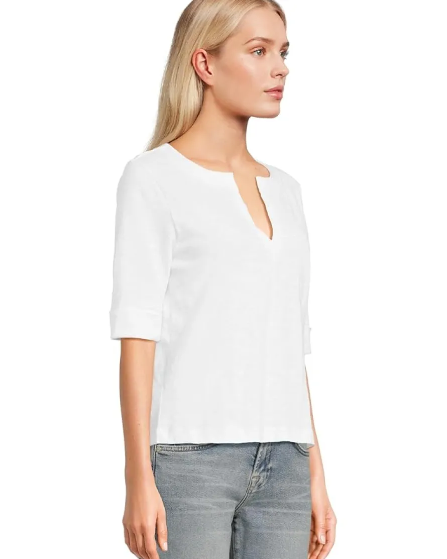 - The Cuffed Sleeve Split Neck by Lilla P™ is a fresh update to one of our best-selling tees. Designed with clean cuffed elbow sleeves and a feminine split neckline, this top strikes the perfect balance between comfort and style. The subtle texture of the slub knit adds dimension, while the neck-facing detail offers a polished finish. Skimming the body without being fitted, this tee delivers a refined silhouette that’s easy to wear all season long-and beyond.