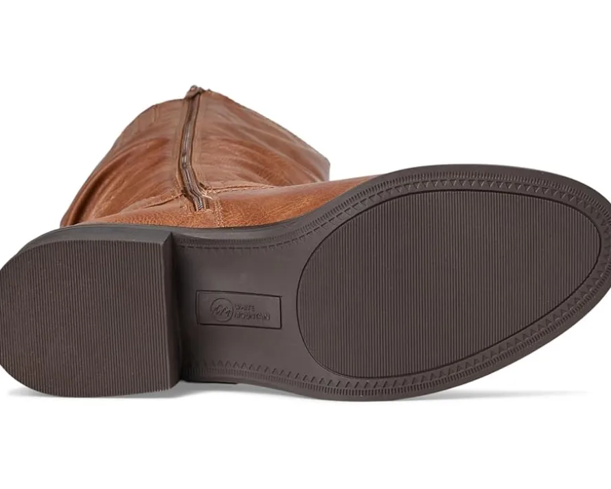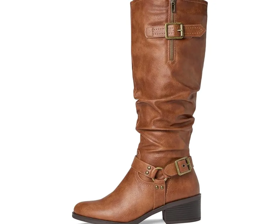 - Saddle up for style and sophistication with the cushion tall shaft boot from White Mountain shoes. The western inspired harness buckle and strap give it a unique look to a classic riding boot. The top buckle isn’t just for looks; it is adjustable to give you a wider shaft if needed.