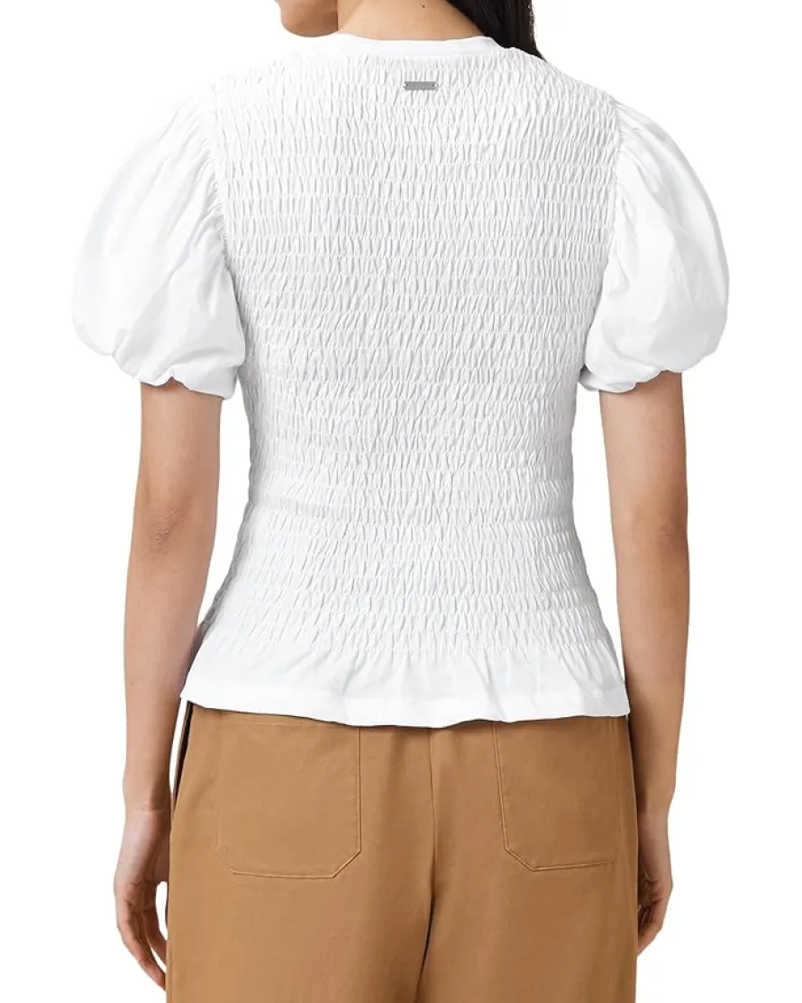 - Designed with a shirred bodice and short puff sleeves, the AllSaints™ Dael Top features a crew neckline, ruffled hem, and a slim, cropped silhouette that pairs effortlessly with high-rise skirts or trousers.
