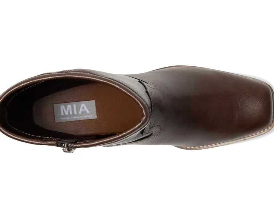 - The MIA™ Dagny boot will take you into any season on a high note. Crafted with vegan leather upper and built on our MIA Signature Footbed™, it promises ultimate comfort with every step. Featuring a convenient zippered closure for easy on and off, a block heel, and an ankle-high shaft, it’s the perfect blend of style and support.