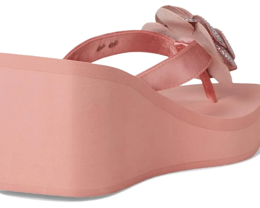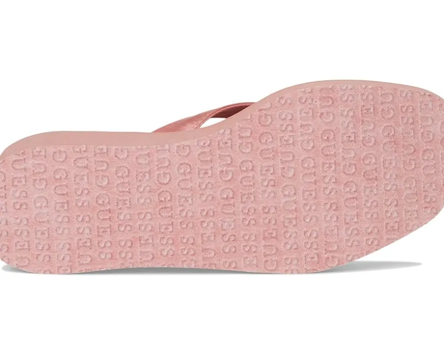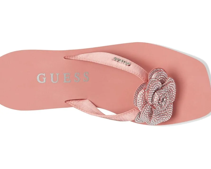 - A classic Guess beach style, the GUESS® Damani are lightweight EVA wedge heels. They are made of a rubber insole and polyurethane lining for added comfort. These heeled sandals are a stylish slip-on summertime fave featuring a rhinestone embellished flower detail for a stylish appeal.