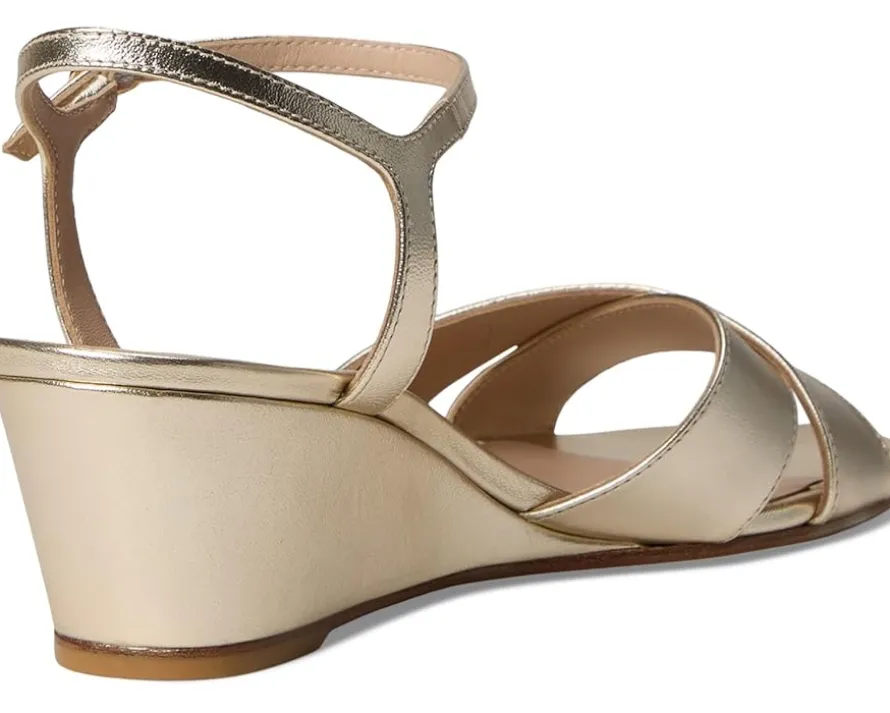 - Make a statement choosing the Stuart Weitzman® Dayna Demi Wedge heels. Crafted with stylish denim upper and luxe mestizo leather lining, these sandals are both fashionable and versatile. The leather insole offers premium comfort, while the open toe design adds a playful touch. Complete with wedge heels, these sandals will effortlessly elevate your look.