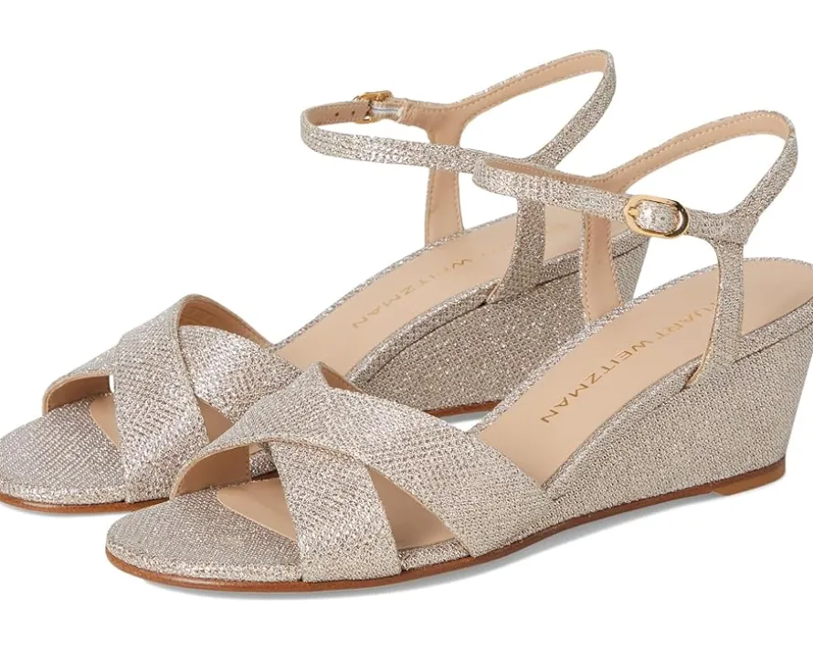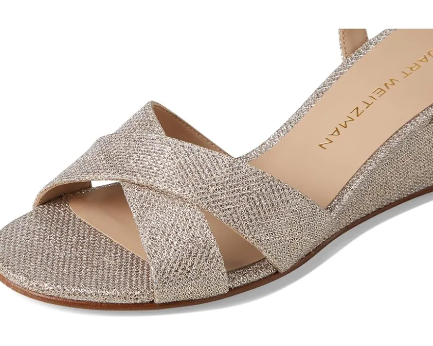- Make a statement choosing the Stuart Weitzman® Dayna Demi Wedge heels. Crafted with stylish denim upper and luxe mestizo leather lining, these sandals are both fashionable and versatile. The leather insole offers premium comfort, while the open toe design adds a playful touch. Complete with wedge heels, these sandals will effortlessly elevate your look.