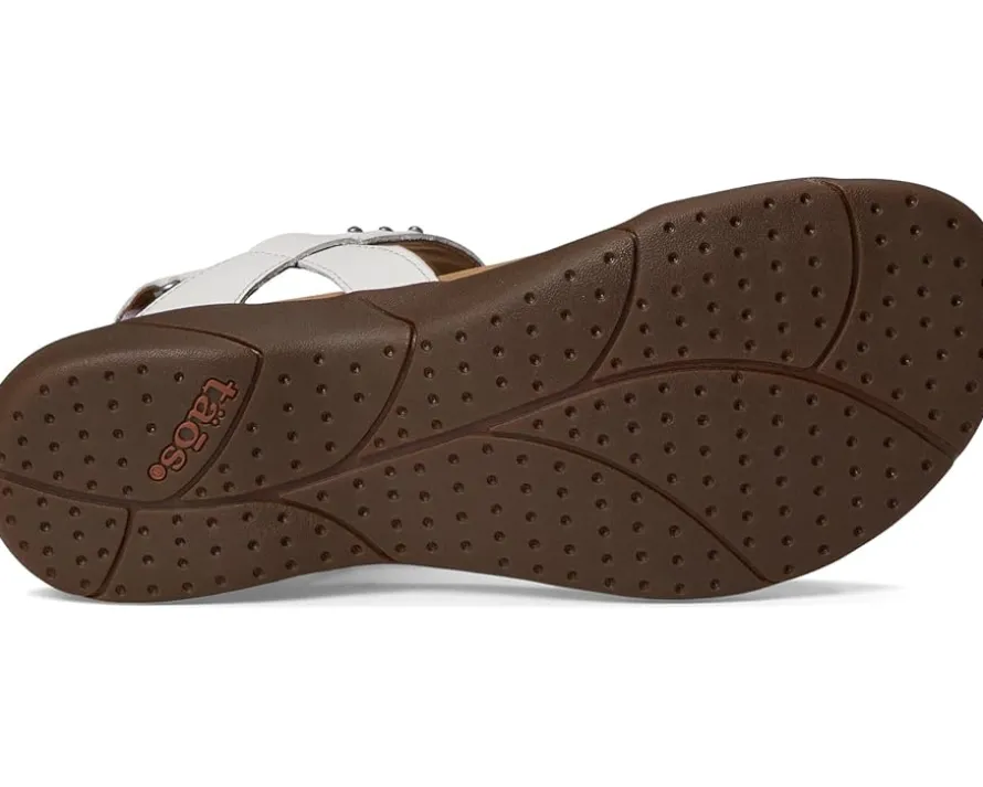 - Add some dazzle to your sandal collection with the Taos® Footwear Dazzle Sandals, crafted in a Z-strap style with delicate stone and stud details. The open round-toe sandals feature a full-grain leather upper, microfiber lining, Soft Support™ insole with amazing arch support, and Cooling Recovery Foam® that provides comfort for every occasion. The hook-and-loop closure at the back ensures a secure fit.
