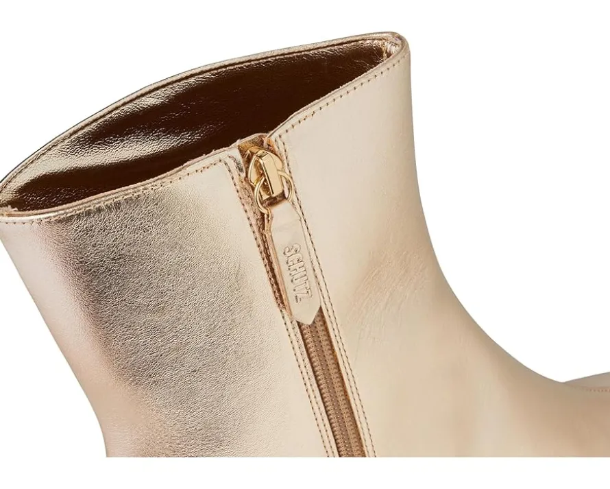 - Walk with style and confidence wearing the Schutz® Dellia boots. These ankle boots are made with a leather upper that features a zippered side closure for easy wear. The foam insole and synthetic lining offer all-day comfort and durability. Perfect to pair with your party dresses and work outfits, these heeled boots work for different occasions.