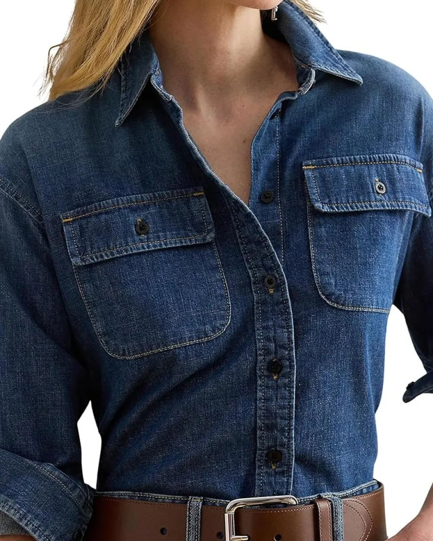 - In right-hand cotton twill, this trim-fitting, dark-dyed LAUREN Ralph Lauren® Denim Shirt is a timeless go-to. Patch pockets on the chest provide the perfect finishing touch.