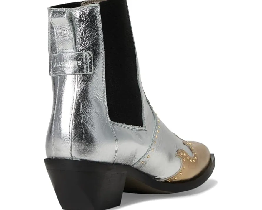 - Step into edgy sophistication wearing the AllSaints™ Denver Stud Boots-where bold style meets every day comfort. Crafted from premium leather with a durable synthetic rubber outsole, these knee-high boots exude confidence and timeless allure. The sleek block heel adds just the right amount of lift while offering stability for all-day wear. Featuring a pull-on design for easy slip-on convenience, these boots are perfect for any occasion, from casual to chic. With intricate stud detailing, the Denver Stud Boot makes a statement that’s both fierce and fashionable.