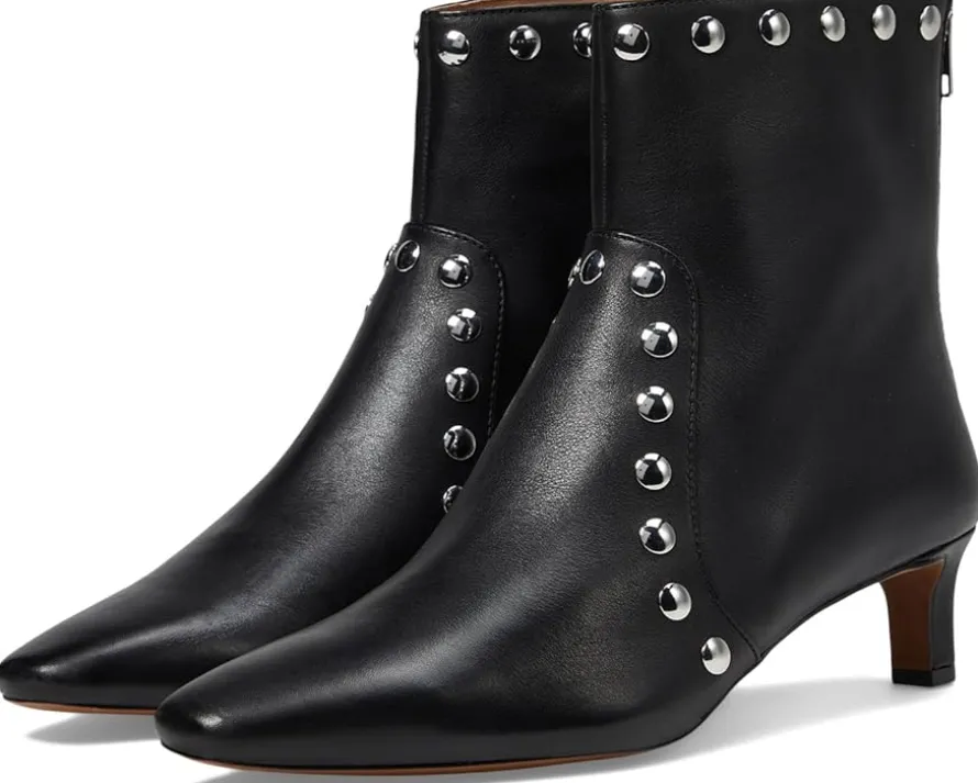 - Step boldly into the season wearing the classy Madewell® Dimes Kitten Heel Boot – Stud. Crafted from leather upper, lining and memory foam insole, this pair of boots features stud detailing, pointed toe, kitten heels, and zippered back closure for a perfect fit.