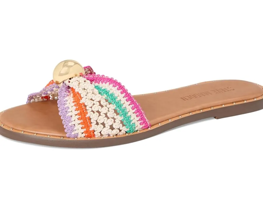 - The Steve Madden® Dipsy slides are the epitome of effortless warm-weather style. Their unique knot detail and gold accent add a touch of sophistication, while the slip-on design makes them easy to wear. These flat sandals are made of a polypropylene upper, rubber insole, and faux leather lining. Whether you’re strolling along the beach or running errands around town, these slide sandals will keep you looking and feeling your best.