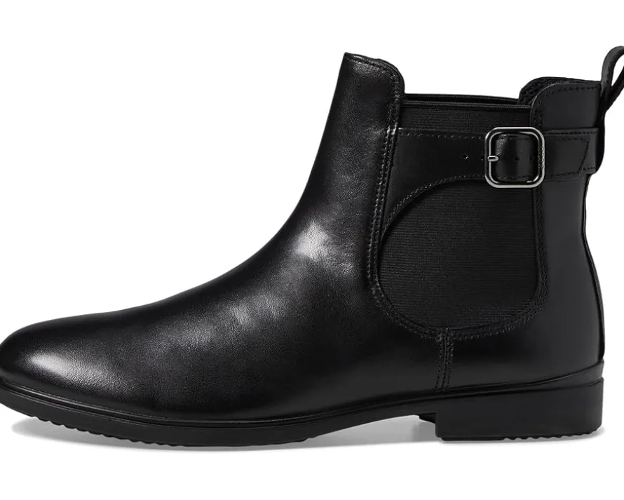 - Enjoy taking a rhythmic stride wearing the ECCO® Dress Classic Chelsea Buckle Ankle Boots. This almond toe pair features wide elasticized goring with buckled accents and back pull tab for easy wear. The ECCO FLUIDFORM™ offers an anatomical fit for a natural and comfortable feel.