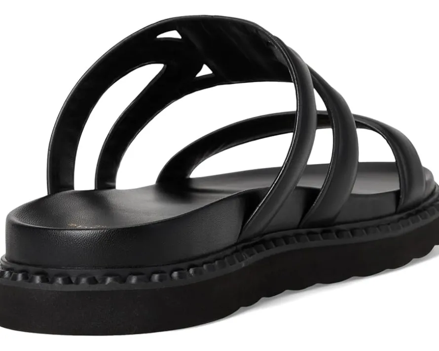 - Designed with signature laser-cut perforations that accent the puffy straps, the Kate Spade New York® Duo Footbed Sandals make a versatile addition to your footwear collection. These sport slides are made of a leather upper, molded footbed, and leather lining.