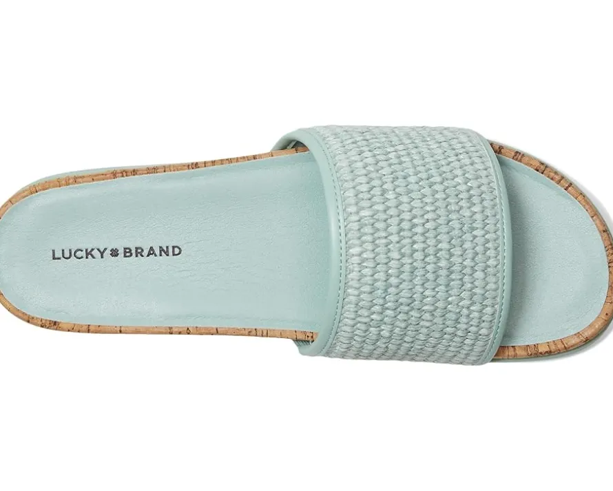 - Pool slides, beach slides, you name it slides! The Lucky Brand® Dylina Woven Band Sandals are bright and fun for all summer long. Easy to slip on and off, these slide sandals are made of a woven jute upper and cushioned rubber insole. Slip into effortless comfort and style with these slip-on sandals.