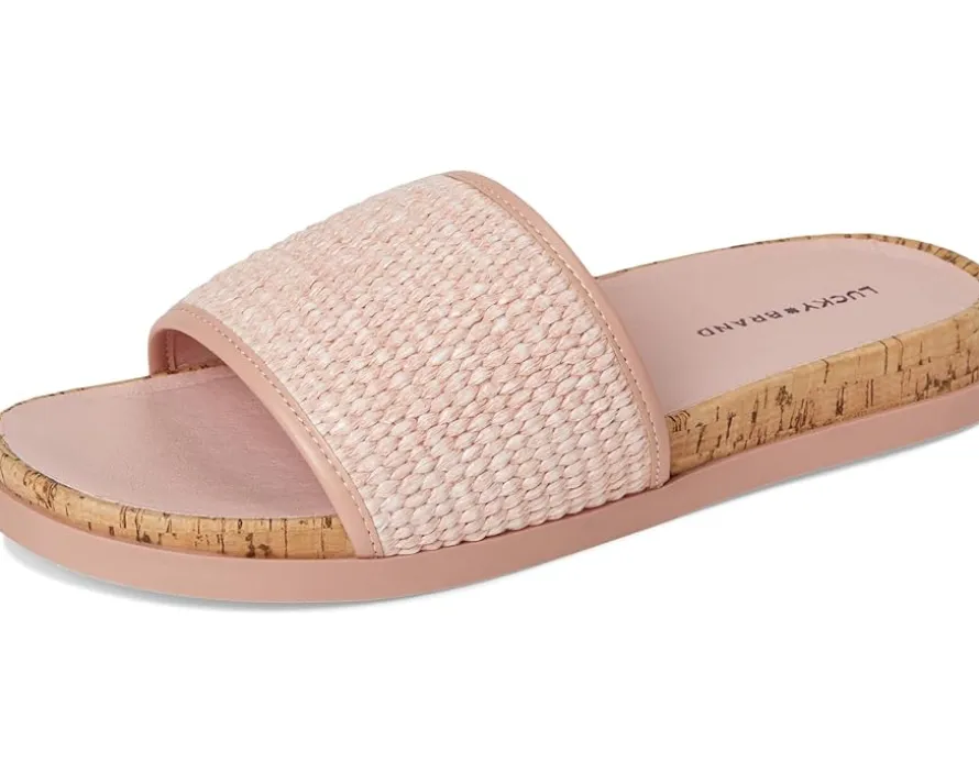 - Pool slides, beach slides, you name it slides! The Lucky Brand® Dylina Woven Band Sandals are bright and fun for all summer long. Easy to slip on and off, these slide sandals are made of a woven jute upper and cushioned rubber insole. Slip into effortless comfort and style with these slip-on sandals.