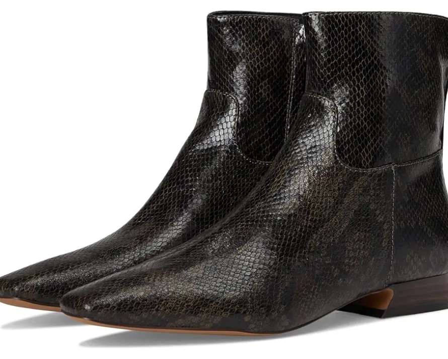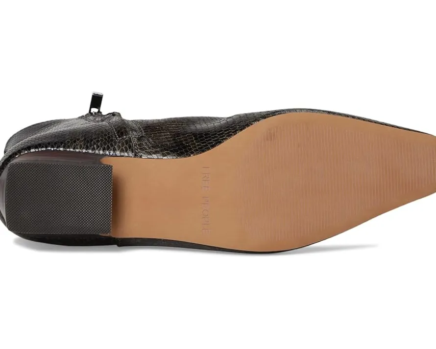 - You’re effortlessly cool in these easy slip-on Free People™ Easy Does It Snake Print Ankle Boots, featuring a chic snip toe and low, slanted block heel, all in an edgy snake print for a textured take on a classic style. The ankle-high boots feature a faux leather upper, leather lining, leather insole, and a zipper closure.