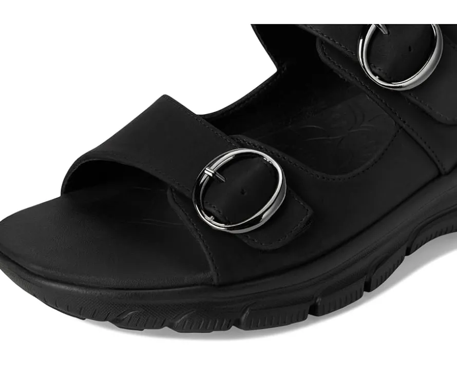 - Enjoy sunny-weather comfort with signature comfort in SKECHERS® Relaxed Fit: Easy Going – Certified Charm. This casual strappy sandal features a vegan leather upper with adjustable hook-and-loop strap closures and a cushioned Yoga Foam® footbed.