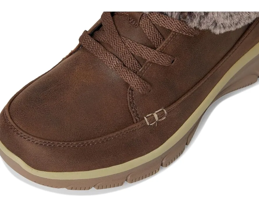 - Simply step into the season with effortless cozy comfort wearing the SKECHERS® Easy Going – Chili Standards Hands Free Slip-ins boots. Designed with an exclusive Heel Pillow™, these ankle-high boots feature a 3M® Scotchgard®-treated vegan leather upper with faux fur trim and lining and a cushioned Skechers Air-Cooled Memory Foam® insole. Their relaxed fit offers a roomy comfort fit at the toe and forefoot. Crafted with 100% vegan materials, these lace-up boots resist water and stains.