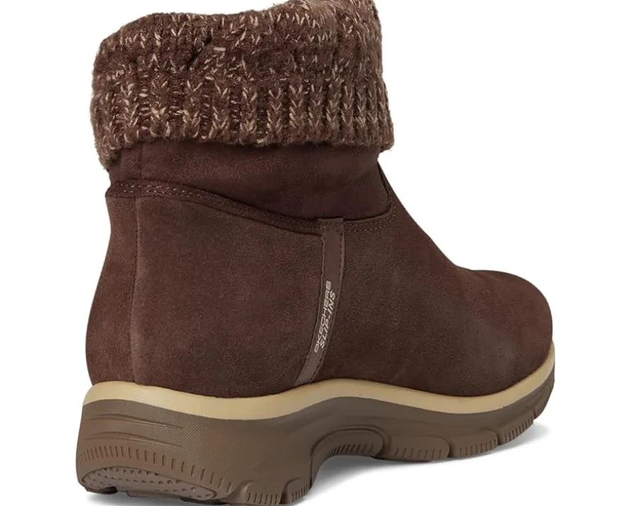 - Explore the outdoors in effortless cozy comfort with the SKECHERS® Easy Going – Cozy Weather 2 Suede Hands Free Slip-ins. Designed with an exclusive heel pillow™, these slip-on booties feature a suede upper that is treated with 3M® Scotchgard® to resist water and stains. They are designed with a sweater knit fold-over collar, fabric lining, and a cushioned Skechers Air-cooled Memory Foam® insole. These ankle-high boots are styled with a side buckle closure for a secure fit.