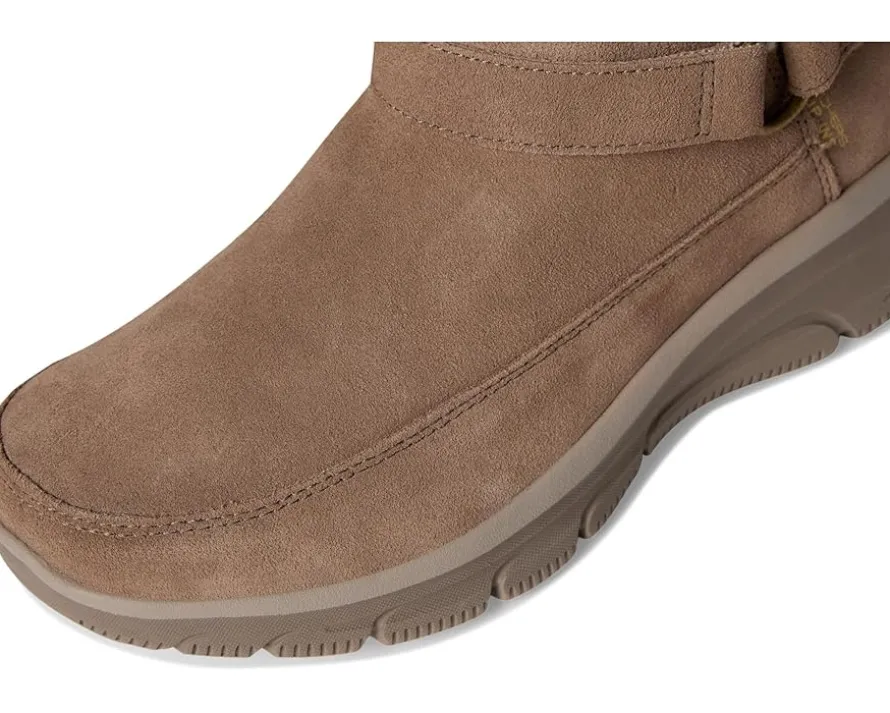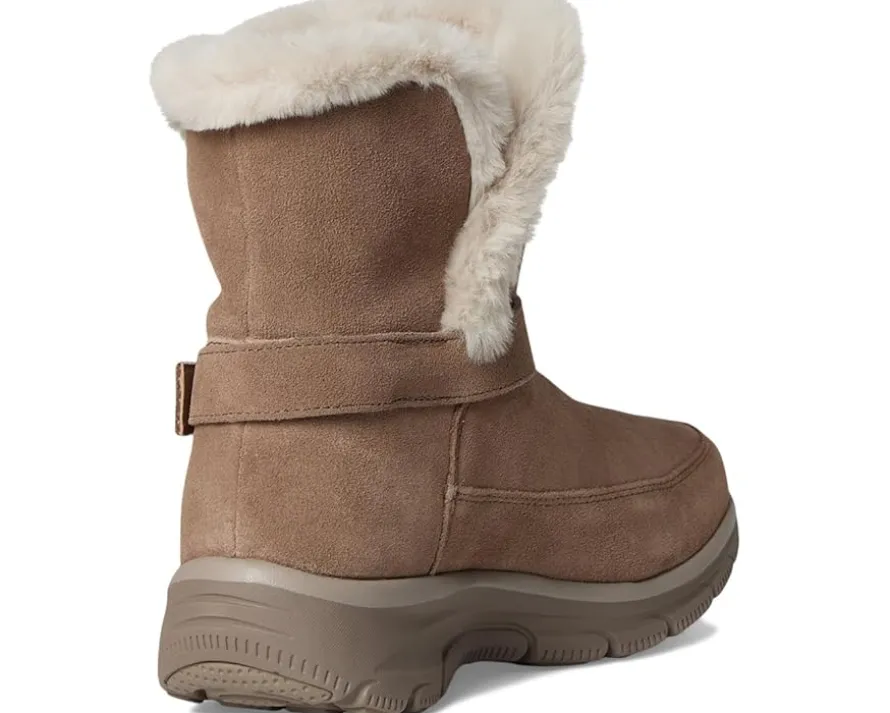 - Simply step into the season with effortless cozy comfort wearing SKECHERS® Easy Going – Dreamers Luxe Vibe Hands Free Slip-ins. Designed with the exclusive Heel Pillow™, this boot features a 3M® Scotchgard® treated suede upper with faux fur trim and lining, wrapped buckle detail and a cushioned Skechers Air-cooled Memory Foam® insole.