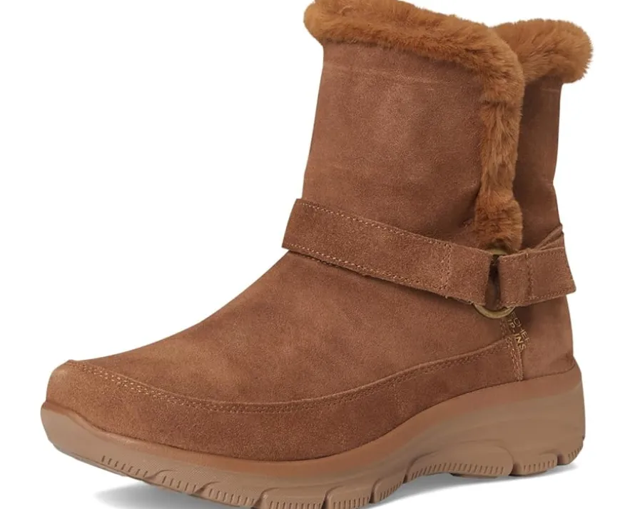 - Simply step into the season with effortless cozy comfort wearing SKECHERS® Easy Going – Dreamers Luxe Vibe Hands Free Slip-ins. Designed with the exclusive Heel Pillow™, this boot features a 3M® Scotchgard® treated suede upper with faux fur trim and lining, wrapped buckle detail and a cushioned Skechers Air-cooled Memory Foam® insole.