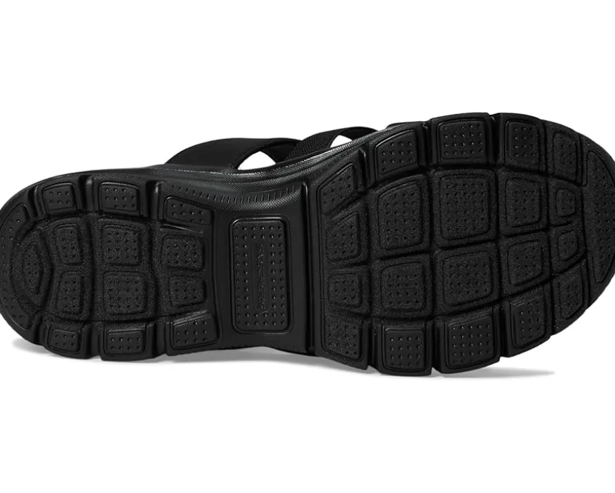 - Head on for explorations in boundless comfort wearing the water-resistant SKECHERS® Easy Going – Perfect Company Sandals. Crafted with vegan materials, the slip-on slides are designed with a double-band knit leather upper, leather lining, and a Yoga Foam® cushioned comfort footbed. The adjustable buckle closure ensures a custom fit.