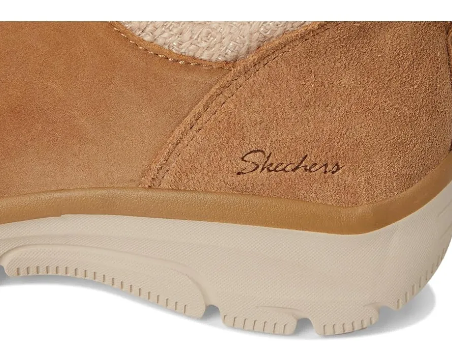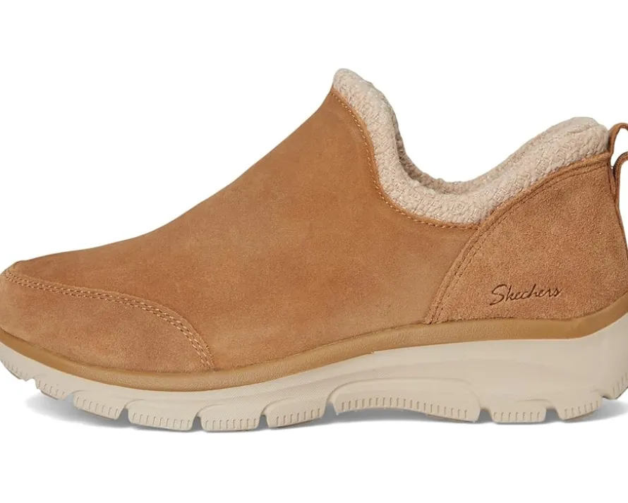 - Get warm comfort and smart, versatile style instantly choosing the SKECHERS® Easy Going – Sweet Behavior. Soft suede upper in a low ankle-height slip-on casual cool weather bootie with chenille collar trim and Skechers Air-Cooled Memory Foam® cushioned comfort insole. It has a bootie design with cutaway sides for flexible, easy-wearing comfort.