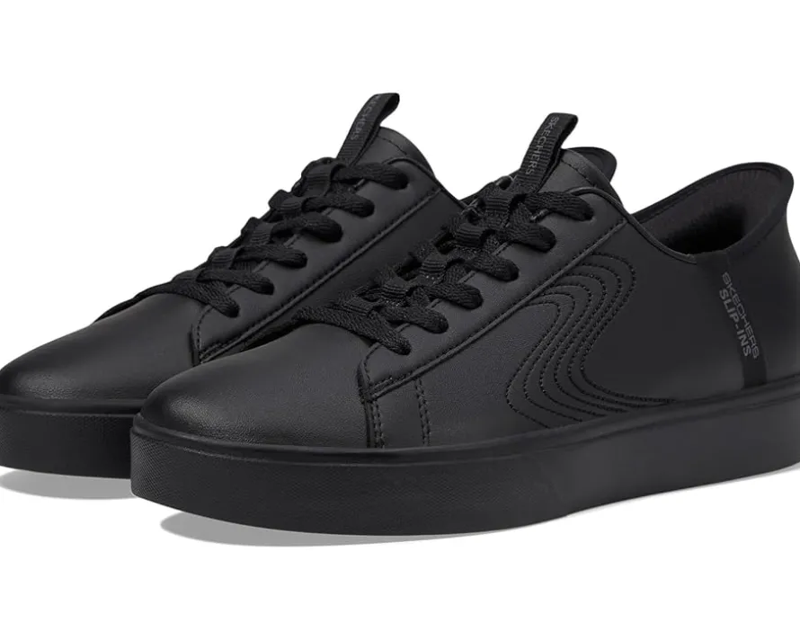 - Convenience meets effortless style in these SKECHERS® Eden Lx-Royal Stride Hands Free Slip-Ins. Effortless entry with hands-free Slip-Ins, featuring an exclusive Heel Pillow™ that ensures your foot stays securely in place. Enjoy the ultimate comfort of Air-Cooled Memory Foam® cushioned insoles, perfect for all-day wear. The synthetic upper and outsole provide durability, while the textile lining and insole add extra softness. With a convenient lace-up closure, these shoes offer a secure fit every time.