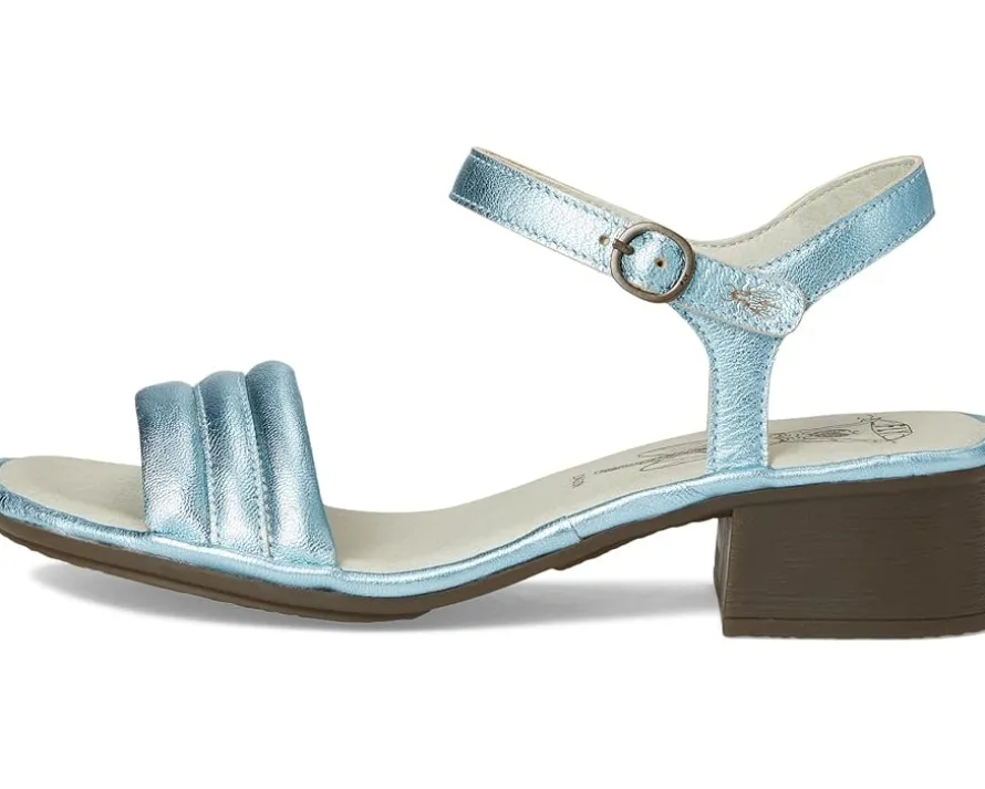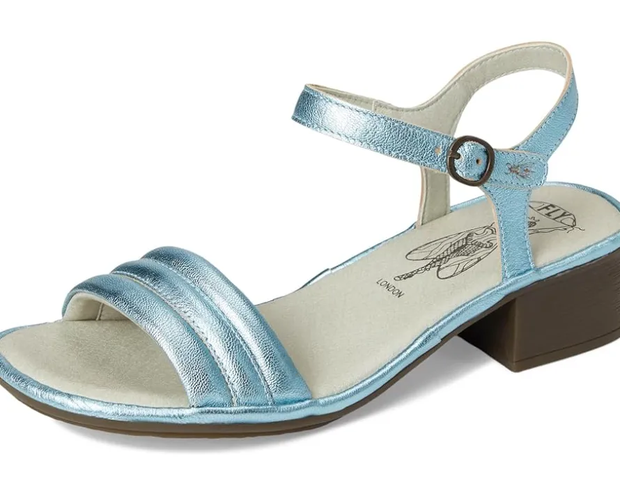 - The stitch-down construction of these FLY LONDON® EIVA567FLY sandals allows for great flexibility. The soft leather uppers are beautiful and the heel-to-toe padded insole, rounded toe shape, and flexible rubber sole add comfort to your feet. The sandal has a polyester lining, foam insole, and thermo rubber outsole.