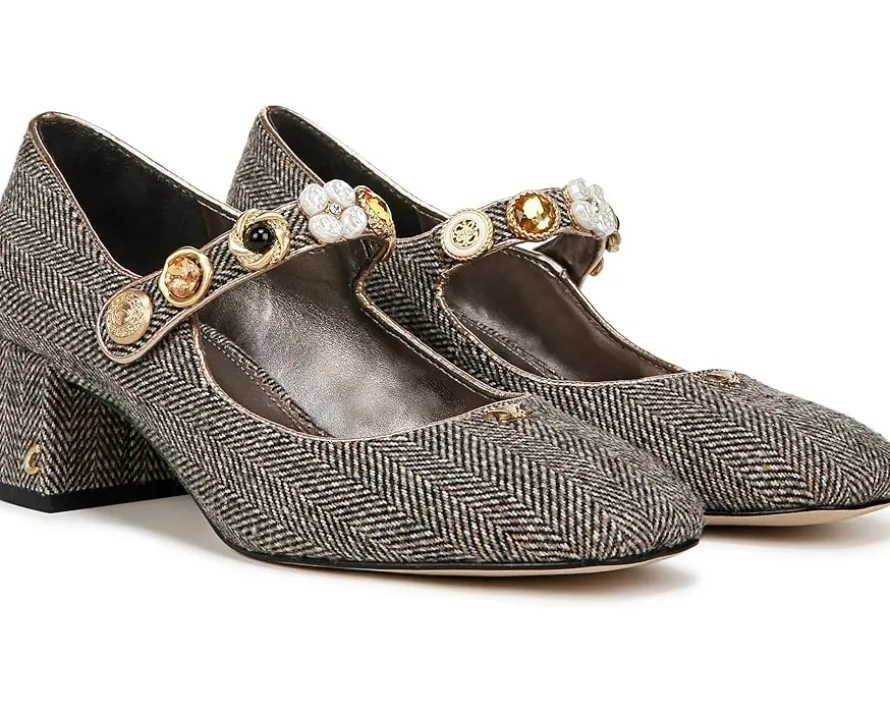 - Meet the Circus by Sam Edelman® Elaine: a chic block-heel Mary Jane adorned with vintage-inspired button details. The square toe pair features fabric/synthetic upper construction with synthetic lining and insole.