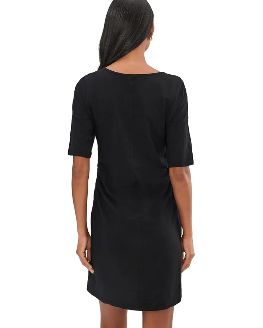 - The Mod-o-doc™ Elbow Sleeve Below The Knee Shirred Dress serves as the perfect choice for parties, formal events, and other occasions. This below-the-knee dress is styled with elbow-length sleeves, a boat neckline, and a straight hem. Its shirring detail at the sides offers a flattering fit. Made from cotton fabric, this chic dress makes a stylish addition to your wardrobe.
