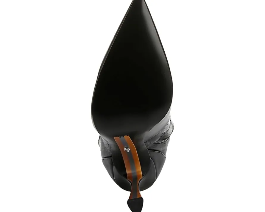 - Feel sky-high wearing the Sam Edelman® Elia boots with belt detailing and tapered stiletto heels. The leather upper of these boots features fall textures and chunky knits for a sleek look. These tall boots are crafted with a polyurethane insole and lining for all-day comfort. These above-the-knee heeled boots add a glamorous look to your outfits and styles.