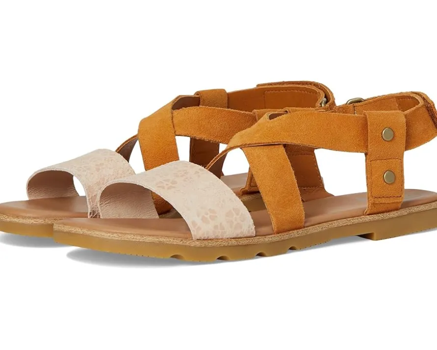 - Everyone needs a do-it-all sandal in their closet, and the SOREL® Ella™ III Crisscross Sandals is the one. Its timeless style makes it work with dresses to jeans, and the adjustable heel strap makes for the perfect fit. Available in full-grain leather (CW 010, 246) or suede with a clear print (CW 697). Crafted from full-grain leather upper, synthetic lining, plush EVA footbed with synthetic topcover, and molded rubber outsole.