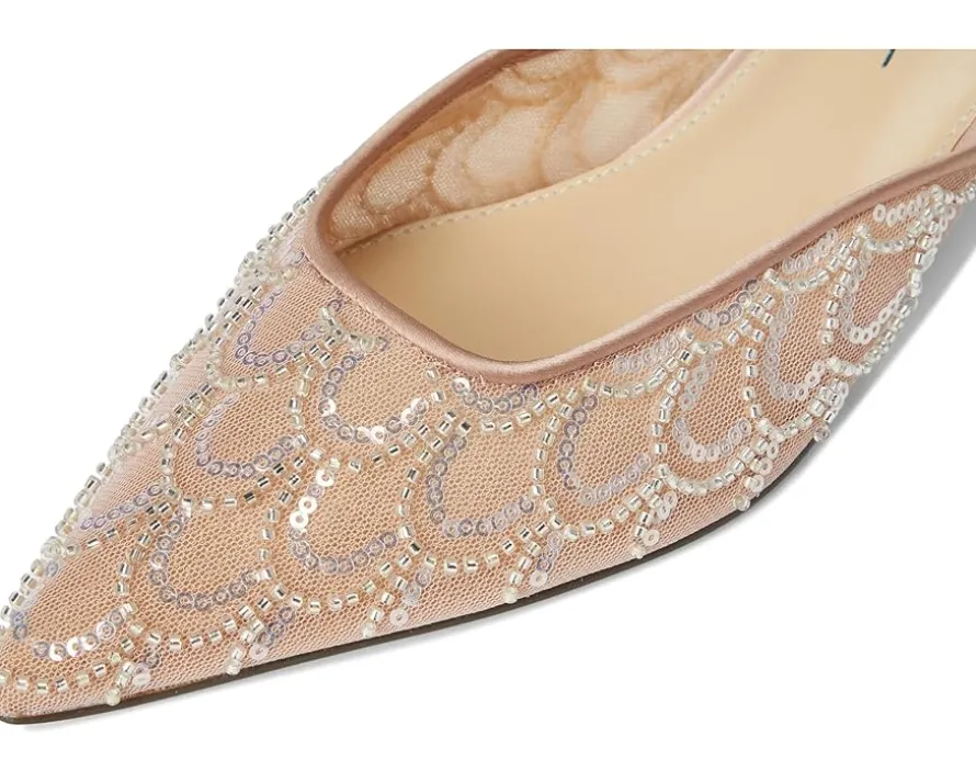- The Blue™ by Betsey Johnson Ellis pumps are glam and chic. Their mesh upper features sequin detailing allover for a stylish appeal. They are made of a polyurethane insole and lining. These heeled sandals are easy to slip on and off. Make any outfit sparkle with these slip-on pumps.