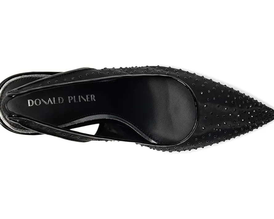 - The Donald Pliner® Eloisesp slingback is elegance in motion. This pointed-toe style stuns with its sheer mesh upper, heat-embossed delicate crystal studs, and refined piping. An elasticized heel strap ensures a secure fit, while the slim sculpted heel finishes the look with shine.