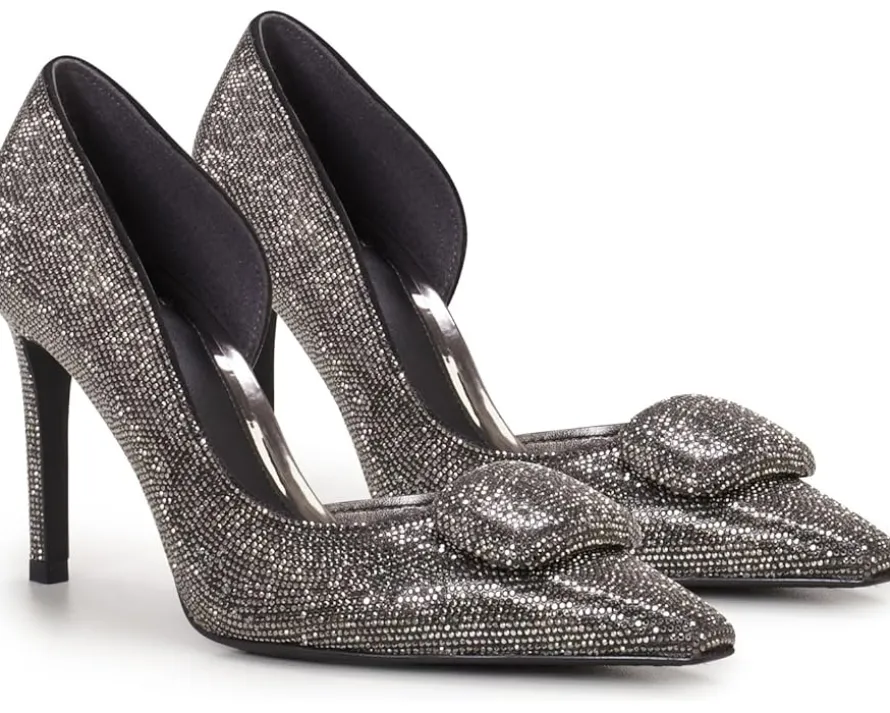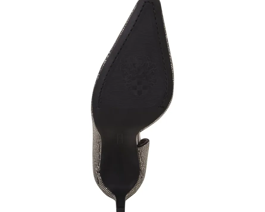 - Elevate your style donning the Vince Camuto® Emelias Pumps! Made with a luxurious polyester upper and lining, these glitter-embellished stiletto pumps are perfect for adding some sparkle to any outfit. The cushioned insole ensures all-day comfort, while the snip toe design and sexy stiletto heels add a touch of elegance to your look.